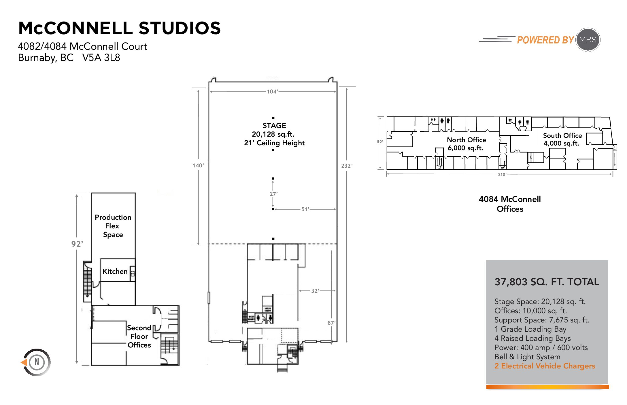 McConnell Studios offers 37,804 square feet of stage, office and support space across two buildings. The campus is easily accessible from Lougheed Highway and Highway #1, and it is less than a 10-minute drive to our Lighting and Grip facility at Eastlake.